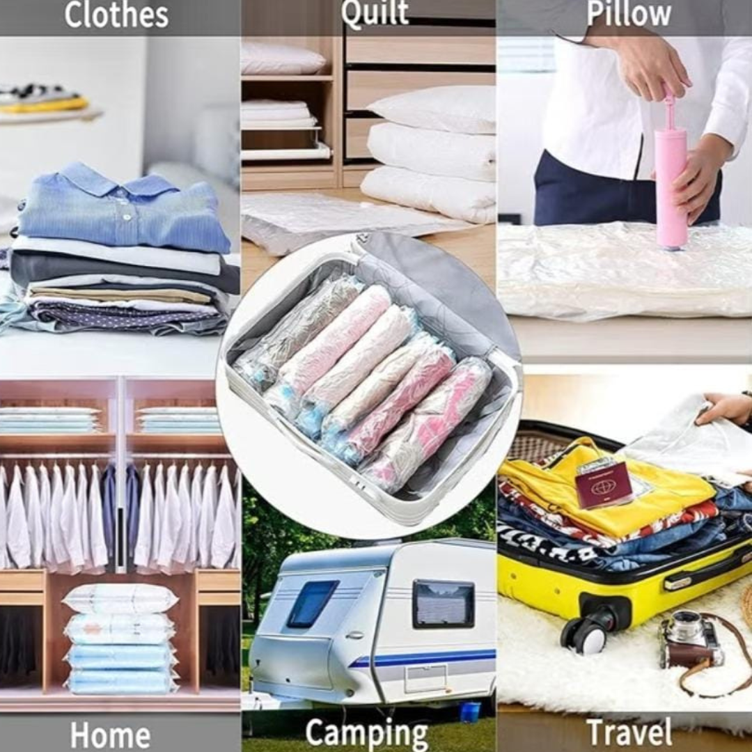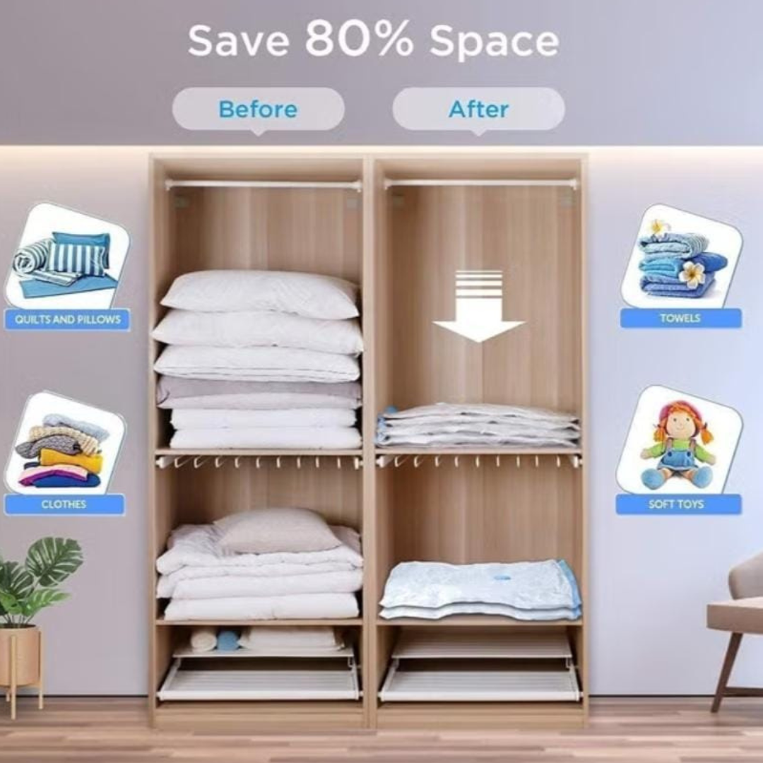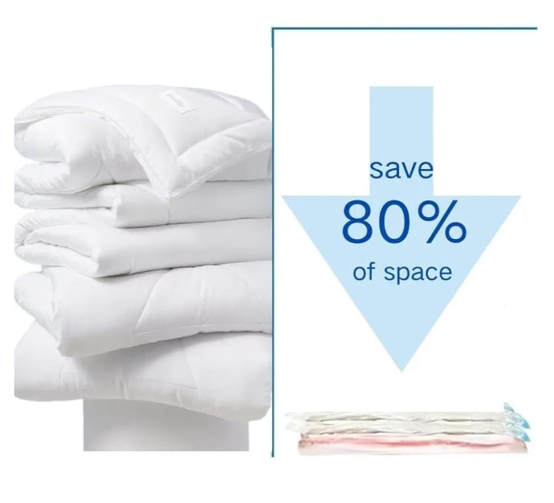تقلل أكياس التخزين المفرغة من الهواء حجم الملابس حتى 80%، مما يوفر مساحة كبيرة في المنزل أو أثناء السفر