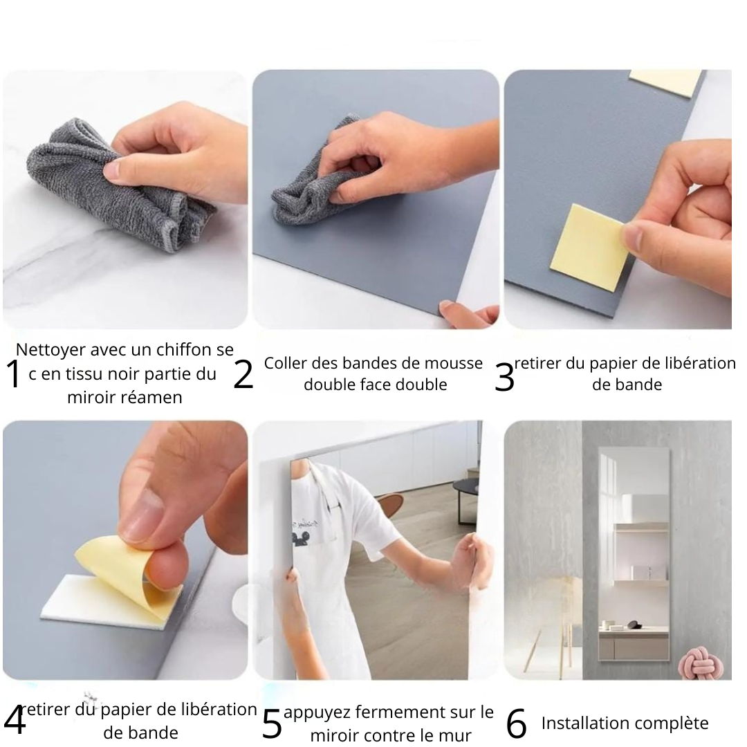 Ce miroir allie style et praticité. Design moderne aux bords arrondis, il s’adapte à tous les intérieurs. Facile à fixer sans percer, il reflète parfaitement et résiste à la poussière et aux rayures. Parfait pour décorer ou faciliter votre quotidien